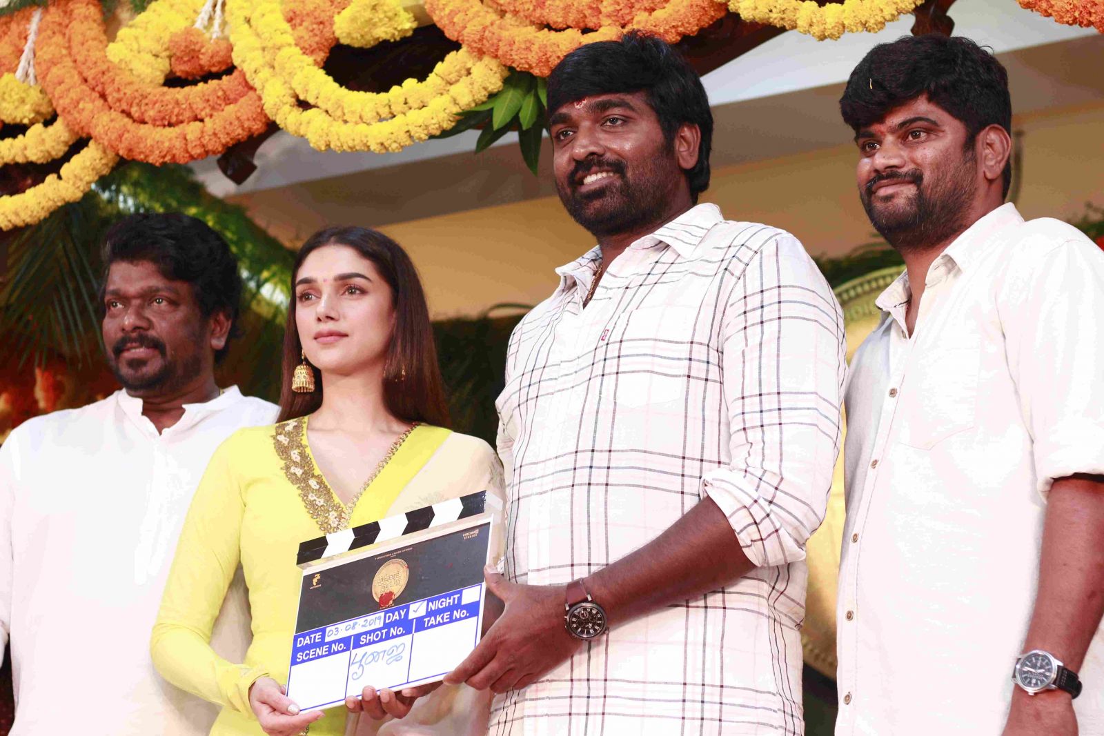 பூஜையில், விஜய்சேதுபதி, அதிதிராவ் ஹெய்தாரி, பார்த்திபன், காயத்ரி, சமுத்திரக்கனி, பகவதி பெருமாள், கருணாகரன், ராஜ்குமார், தயாரிப்பாளர்கள் வயகாம் அனுப் விஜய்சேதுபதி புரொடக்சன் ராஜேஷ், சினிமாவாலா சதிஷ் மற்றும் இயக்குநர்கள் பிரேம்குமார், பாலாஜி தரணிதரன், தியாகராஜ குமாரராஜா, அஜய் ஞானமுத்து, பிரபாகரன், மருதுபாண்டி, ஆண்ட்ரு ஆகியோர் கலந்து கொண்டனர். சிறப்பு விருந்தினராக ஆந்திரமாநிலம் சித்தூர் டிஸ்டிக் கலெக்டர் என்.பாரத்குப்தா கலந்து கொண்டார்.