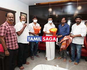 தமிழக முதல்வராக பொறுப்பேற்றுள்ள மாண்புமிகு மு.க.ஸ்டாலின் அவர்களையும் சட்டமன்ற உறுப்பினராக வெற்றிபெற்றுள்ள உதயநிதி ஸ்டாலின் அவர்களையும் நேரில் சந்தித்து சால்வை அணிவித்து வாழ்த்து தெரிவித்தார் பெப்சி தலைவர் ஆர்.கே.செல்வமணி.அருகில் தமிழ் திரைப்பட தயாரிப்பாளர்கள் சங்க தலைவர் முரளி இராமநாராயணன், தமிழ்நாடு திரைப்பட இயக்குனர்கள் சங்க செயலாளர் ஆர்.வி. உதயகுமார், இயக்குனர்கள் சங்க பொருளாளர் பேரரசு, பெப்சி பொருளாளர் சுவாமிநாதன், பெப்சி துணை தலைவர் ஸ்ரீதர், பி.ஆர்.ஓ.யூனியன் தலைவரும் கவுன்சில் செயற்குழு உறுப்பினருமான விஜயமுரளி ஆகியோர் அருகில் உள்ளனர்.